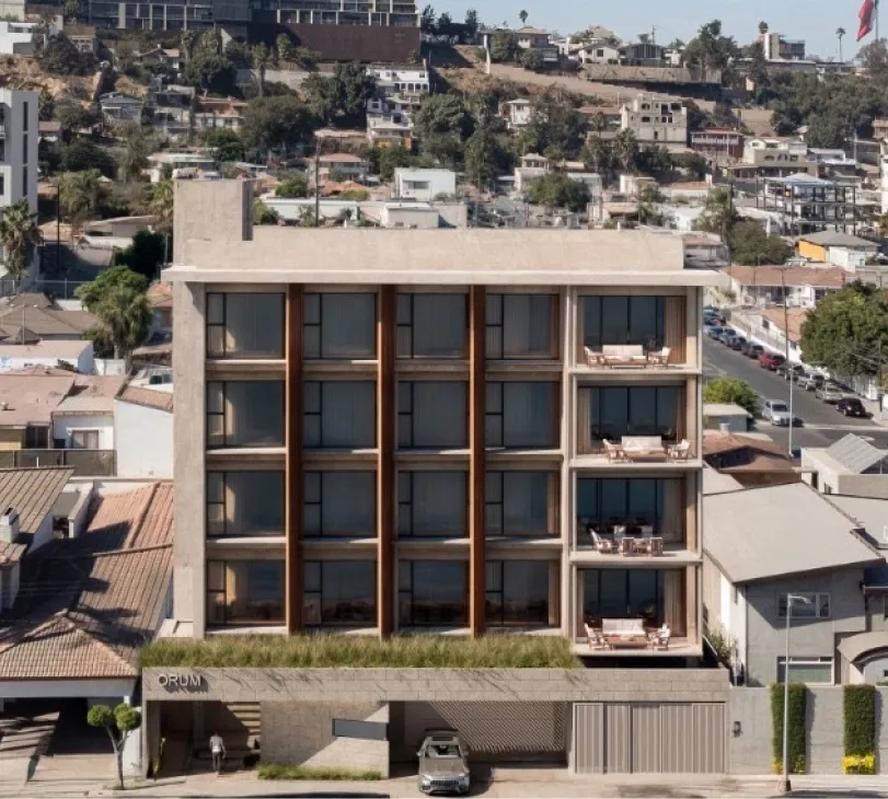 Edificio habitacional con dos departamentos por nivel (~200 m² c/u), producto único en la zona.